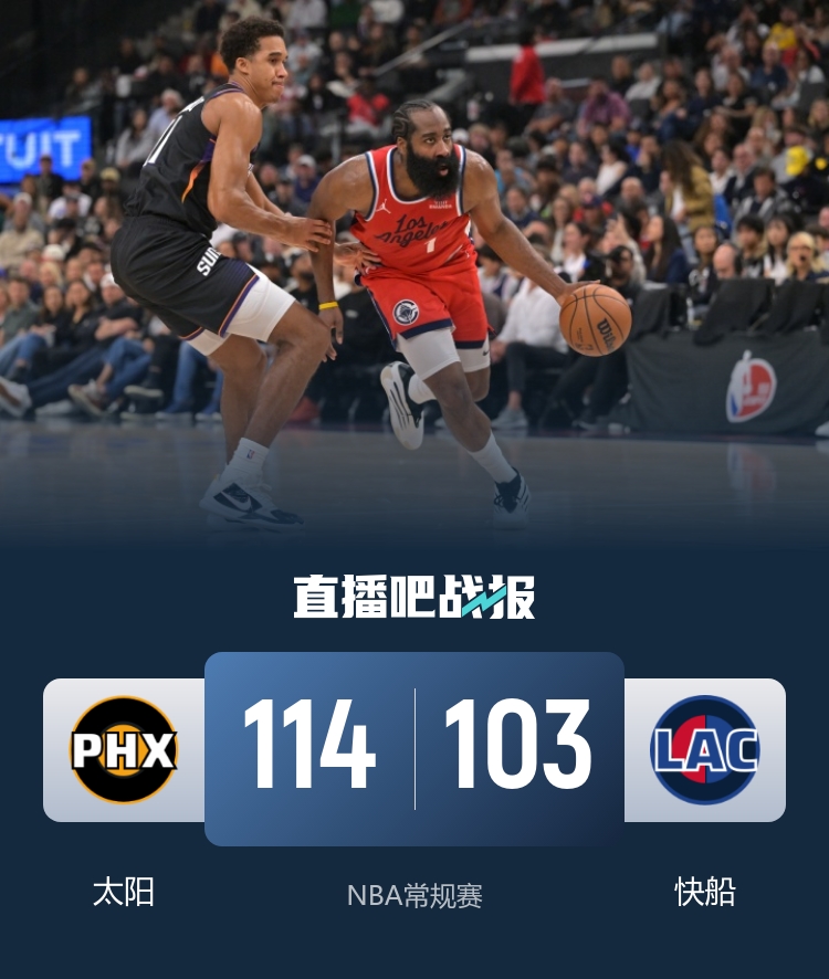 在11月9日的NBA常规赛中,洛杉矶快船在主场对阵菲尼克斯太阳。此役对于快船而言,一场未能取得胜利的比赛,他们在开赛之前战绩为3胜5负,位列西部第11位,而太阳则以4胜5负的战绩暂居西部第9。值得注意的是,快船的明星球员莱昂纳德因伤缺阵,给球队带来了不小的影响。