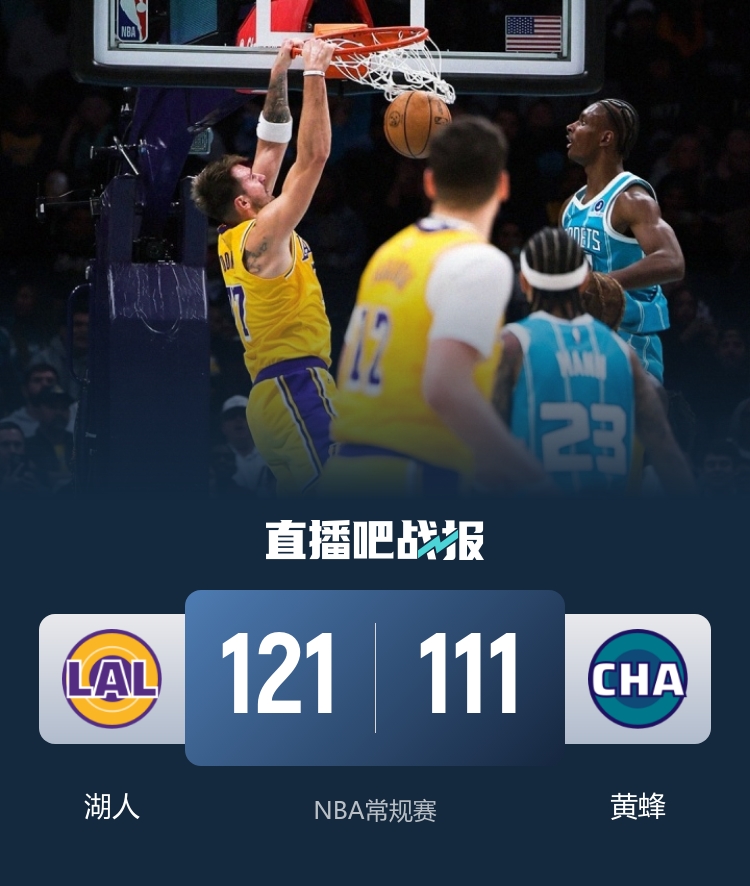 比赛数据方面,湖人(8胜3负)的表现中,东契奇交出了38分、6个篮板和7次助攻的全面数据,里夫斯贡献了24分、5个篮板和7次助攻,八村塁则贡献21分、3个篮板。其他球员如艾顿、斯玛特和拉拉维亚也有不错表现,整体配合良好。黄蜂(3胜7负)方面,布里奇斯独得34分、8个篮板和5次助攻,克尼佩尔差点录得三双,以19分、10个篮板和9次助攻的表现紧随其后。塞克斯顿和卡尔克布伦纳分别得分为13分和9分,为球队贡献了一定火力。尽管拼尽全力,黄蜂仍未能阻止对手的强势攻势。