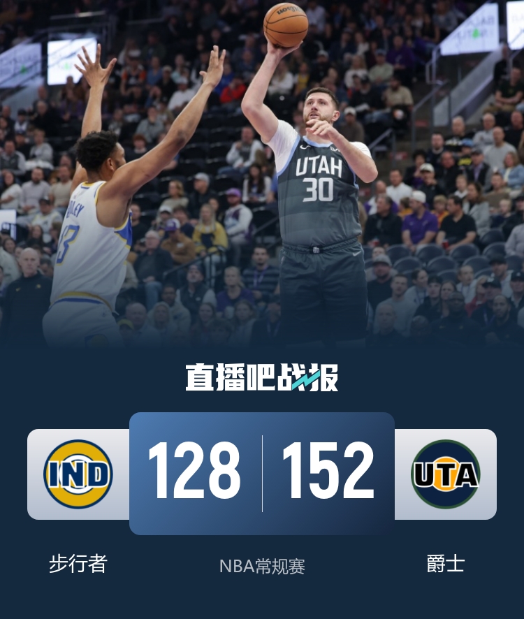 进入下半场,马尔卡宁状态火热,连续命中三分球,单节为球队贡献11分,巩固了领先地位。爵士此后在外线不断发炮,将分差拉开至20分以上。末节比赛,尽管步行者试图追赶,但爵士稳扎稳打,始终将领先优势保持在20分左右。最终,爵士以152-128的顽强表现大胜步行者,结束了连败并同时将步行者的连败扩展至五场。