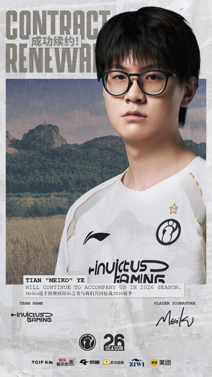 12月10日消息,iG官方今天宣布与辅助选手Meiko续约,这位“辅助大师”将继续以iG之名征战新赛季。