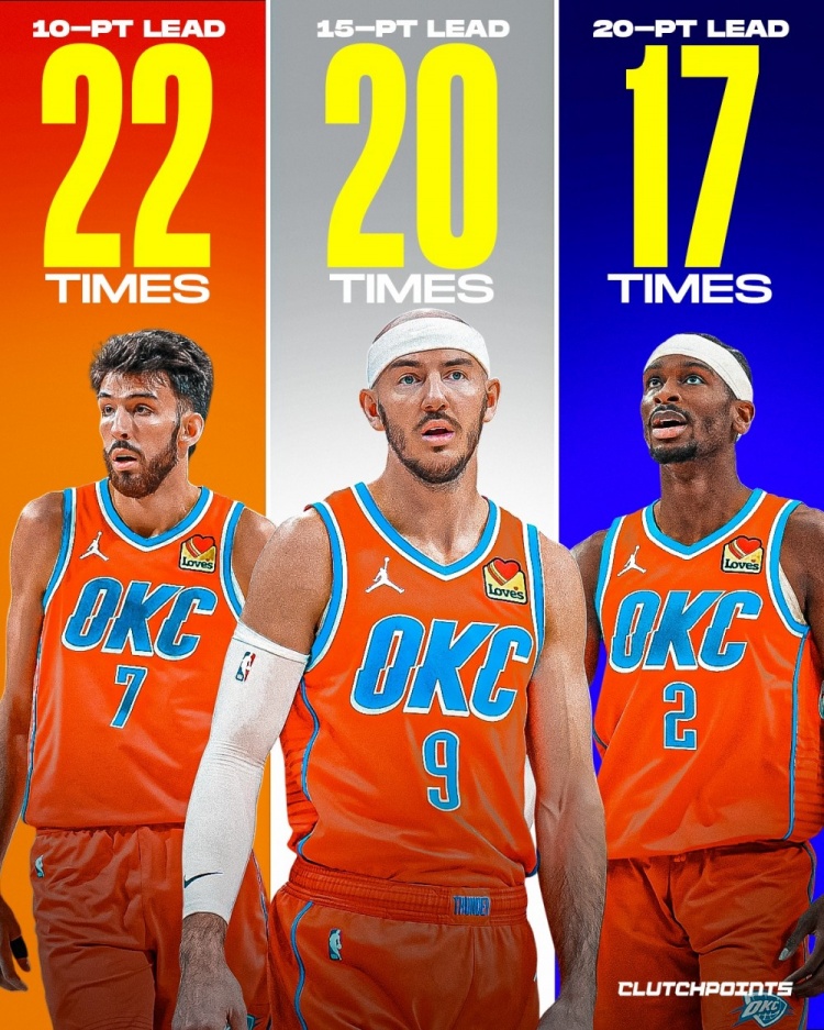 凭借着24胜1负的骄人战绩,雷霆牢牢占据着联盟的榜首。他们的胜利不仅仅是比分的领先,更是以压倒性的分差将对手一一击溃。在过去的25场比赛中,雷霆展现出了非凡的统治力,具体数据令人瞩目:他们已有22场比赛以10分以上领先,20场以15分以上领先,甚至有17场将分差拉大至20分以上。这种表现如同在“新手模式”下畅玩篮球模拟游戏2K,极为罕见。