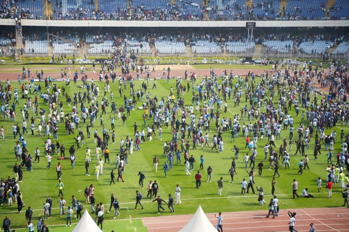 人群中发出了不满的嘘声,水瓶也被愤怒的球迷扔向那些官员,局势愈加严峻,最后甚至有大批球迷进入场内,造成了体育设施的破坏。报告显示,梅西和队友们在活动开始不久前抵达,加尔各答的氛围犹如沸腾的水,充满了兴奋与期待。而这位阿根廷天才在晨光中与苏亚雷斯、德保罗一起踏入这座球场时,原本一切冉冉升起的希冀却未能成真。