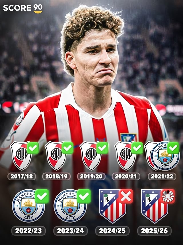 来到马德里竞技已经一个半赛季的阿尔瓦雷斯,虽然他在这段时间内展现了自己的进攻能力,出场82次打入40球并贡献了13次助攻,但遗憾的是,至今尚未获得任何赛事的冠军。在2024年夏天从曼城转会至马竞后,他曾有机会争夺多项赛事的荣誉,但结果未能如愿。