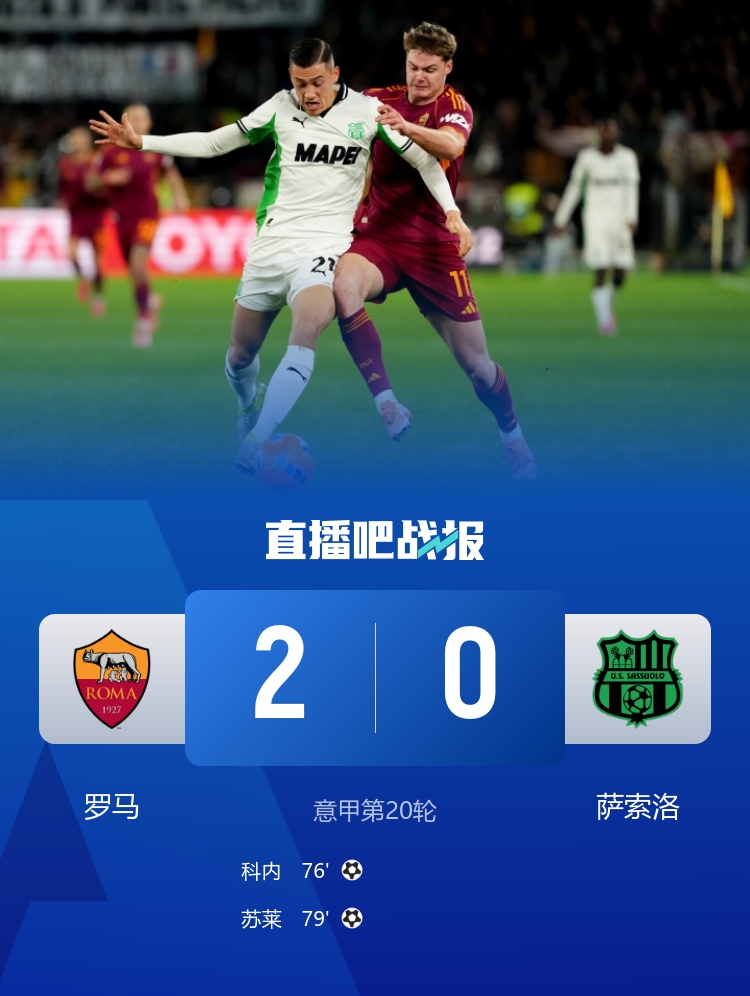 不过,他们的努力并未白费,整场比赛结束时,罗马顺利拿下萨索洛,统治了比赛的节奏,成功将积分提升至39分,暂时升至积分榜的第三位,迎来了联赛的两连胜。