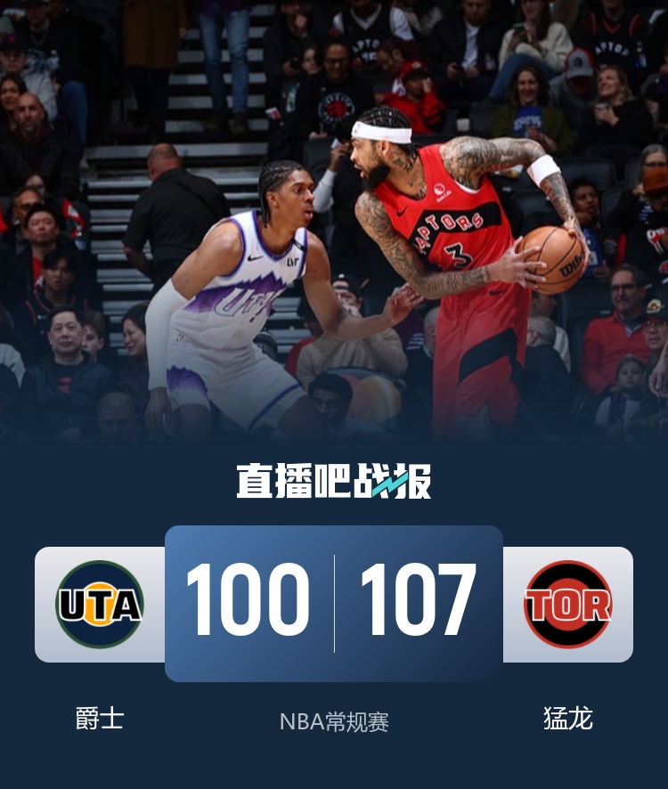 猛龙轻松送爵士连败献礼 巴雷特得分像是练习赛 巴恩斯数据似乎让人期待 马尔卡宁独自扛球队表现可圈可点_NBA直播
