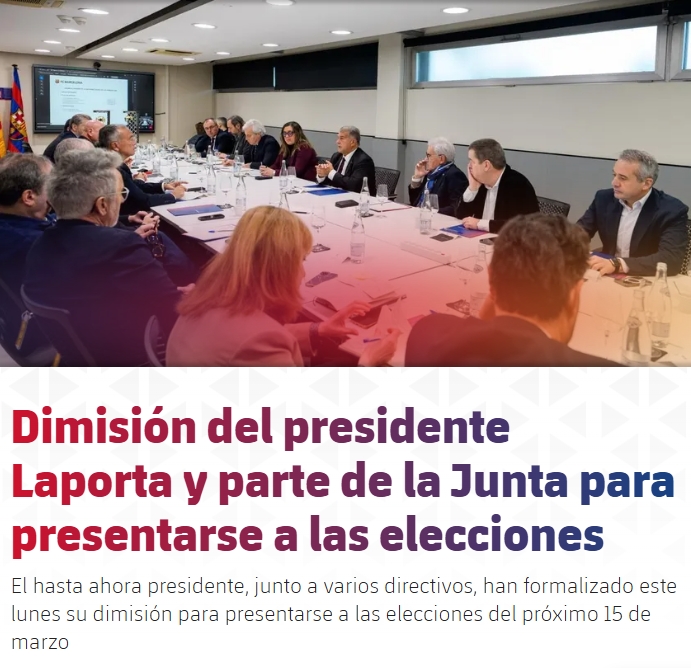 巴萨在官方网站上发布重磅消息,俱乐部主席拉波尔塔及数位董事会成员正式辞去职务,以全力投入于即将于3月15日举行的选举。