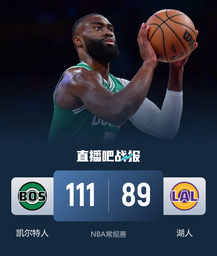 下半场双方在防守端继续发力,冠亚之争日益白热化。然而,进攻效率的降低使得分差始终维持在10分左右。经过一场苦战,第三节结束时,凯尔特人以84-71继续领跑。末节回来,凯尔特人乘胜追击,逐渐将比分优势拉开,比赛的结果似乎已经注定。最终,凯尔特人以111-89战胜湖人,率先向季后赛迈进了一步。