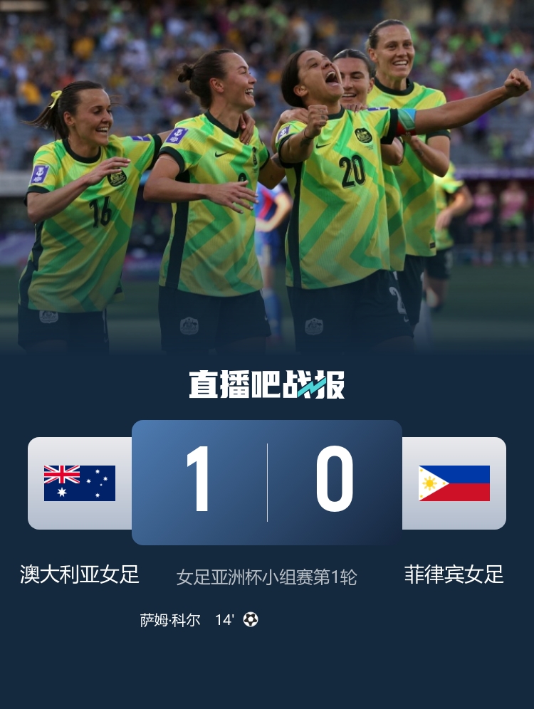 在这个激动人心的时刻,我们见证了女足亚洲杯的揭幕战,澳大利亚女足在HBF公园迎来了菲律宾队。随着比赛的进行,场上气氛逐渐升温。第13分钟,澳大利亚女足展现了她们的实力。惠勒在右路突破后送出了一记精准的传球,富德机灵地将球头球摆渡到后点,科尔稳稳抓住机会,头球攻门成功,为澳大利亚女足拉开了得分的序幕,瞬间点燃了观众们的热情!随着这个进球的到来,比分定格在1-0。